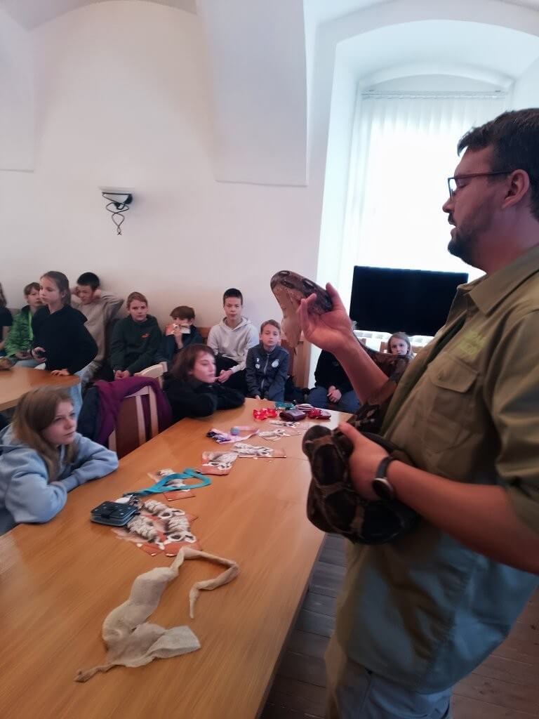 Čtvrteční a páteční dopoledne patřilo opět školám. Jednotlivé třídy se mohli přihlásit na několik programů. V zámku na program o plazech (Zoopark Zájezd), na vyprávění fotografa přírody o jeho práci a o práci ornitologů (Martin Růžek) nebo na program o geologických a paleontologických zajímavostech v okolí Kladna (Skanzen Mayrau).