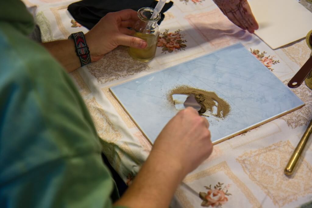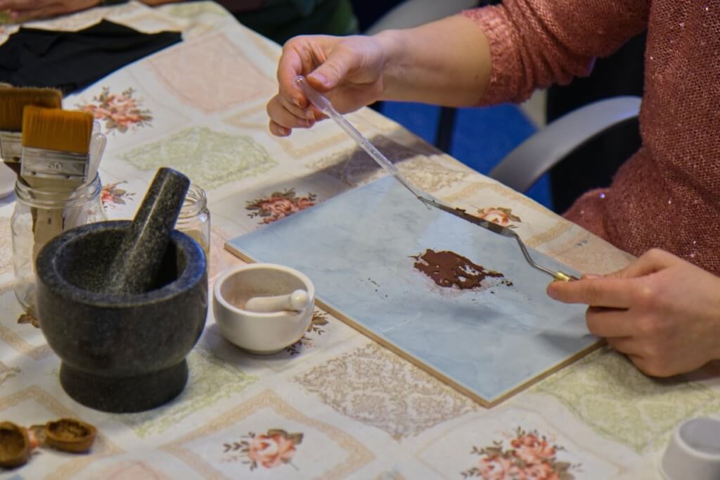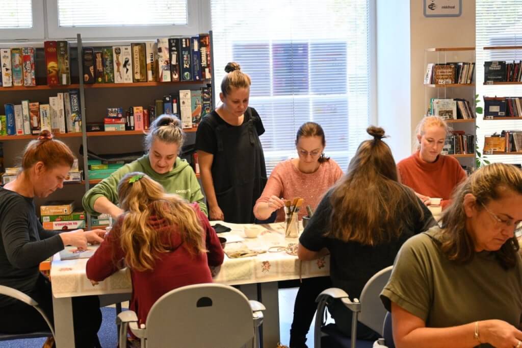 Sobotní akce již probíhaly pouze v Městské knihovně na Sítné. Dopoledne dílnička zpracování a vyrábění z vlny pro děti a odpoledne dva workshopy pro dospělé – výroba šperků z kůže a malování přírodními barvami.
