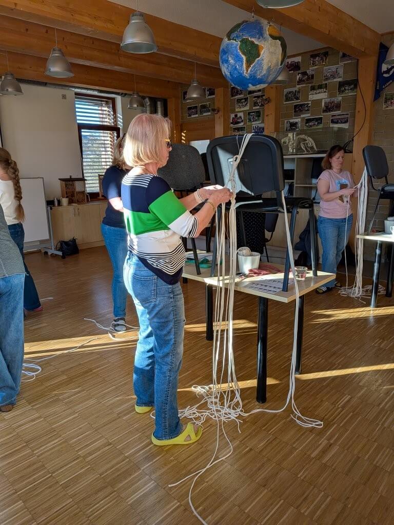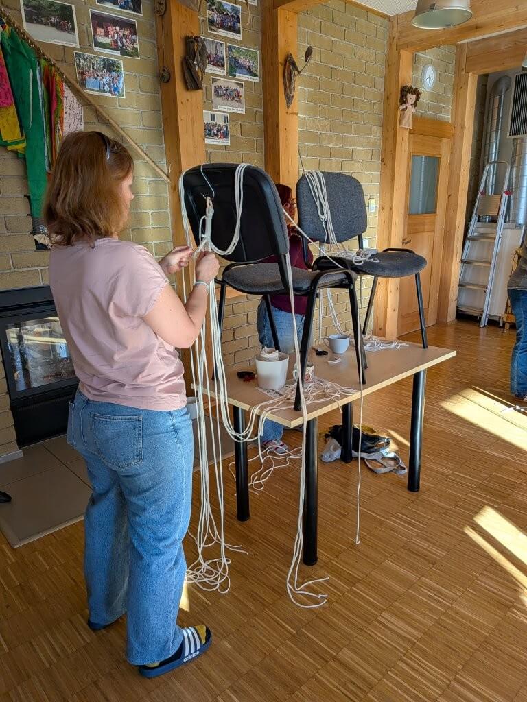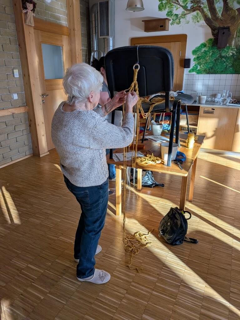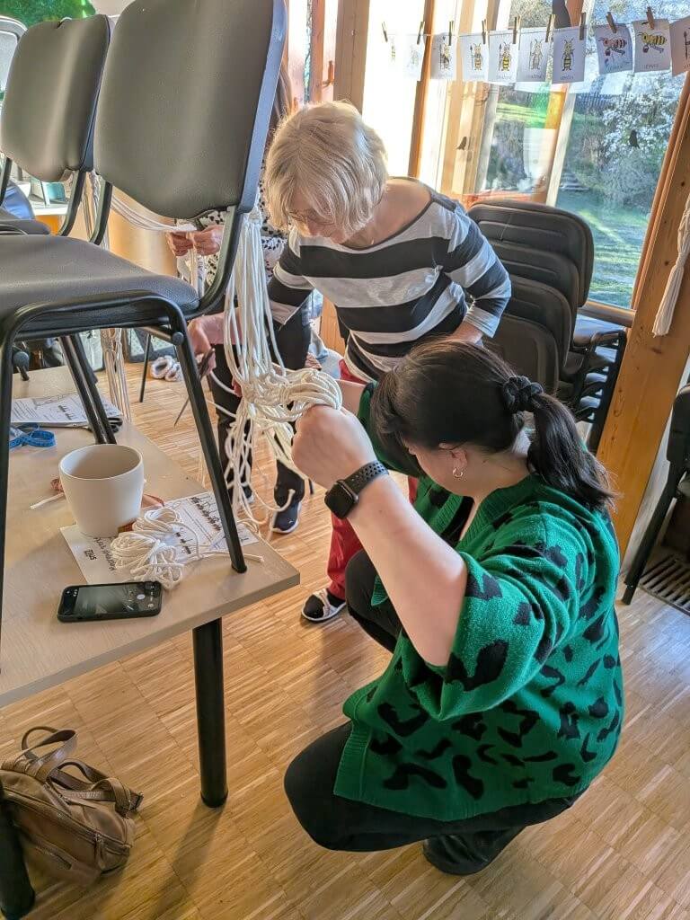 Většina z nich tvořila tzv. kroucenou variantu závěsu. Všem šla práce dobře od ruky, takže se po chvíli začaly rodit krásné výtvory. Některé kurzistky si oprášily své dovednosti z let minulých, jiné se uzly rychle naučily.