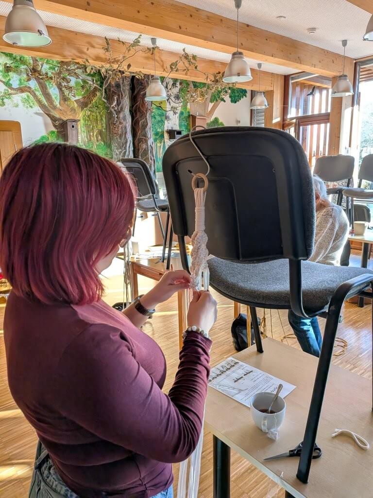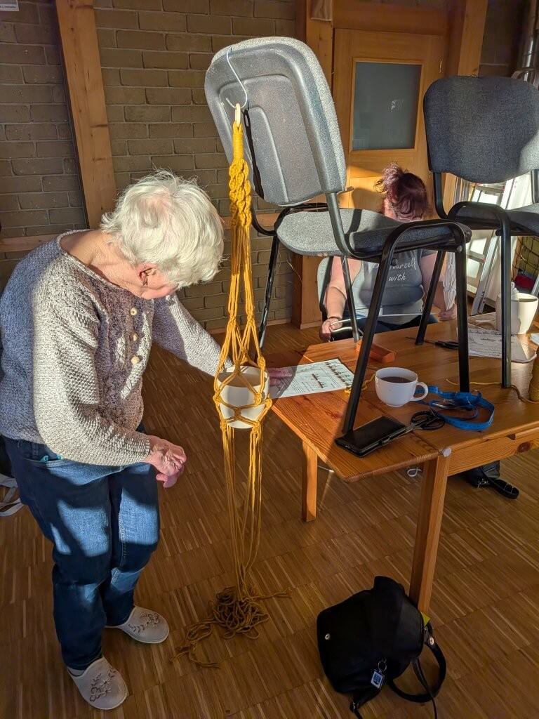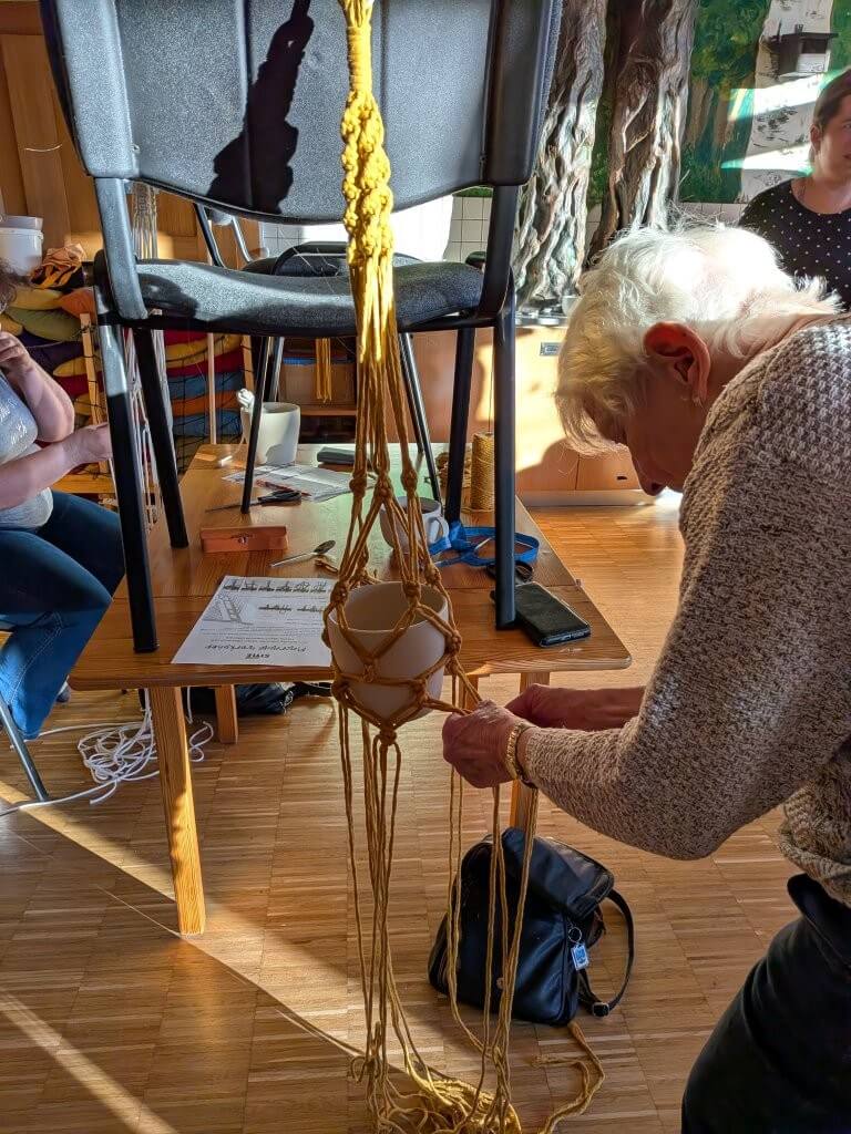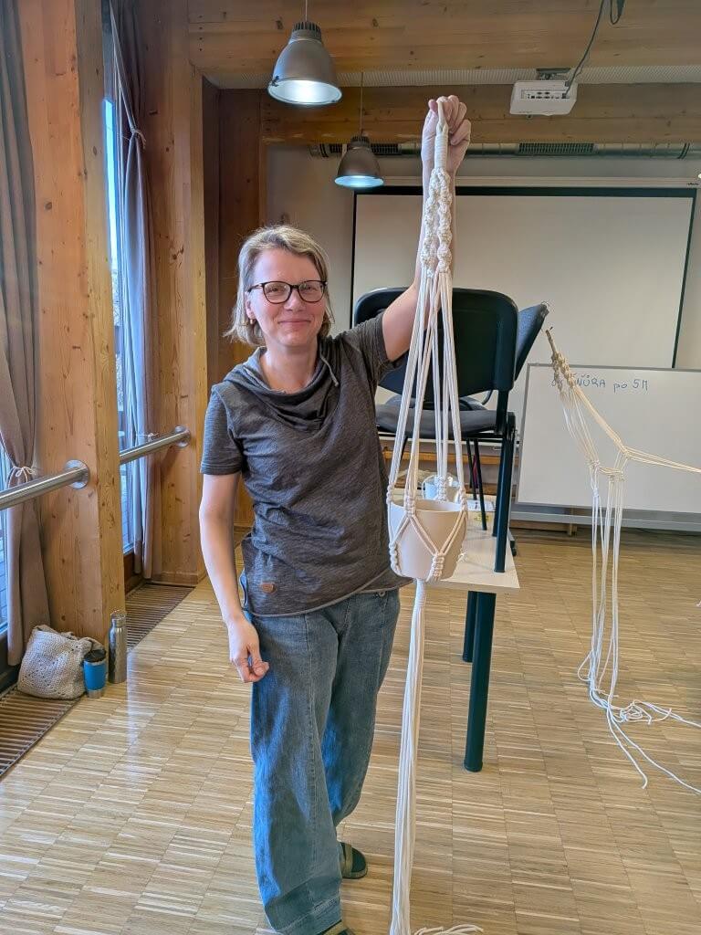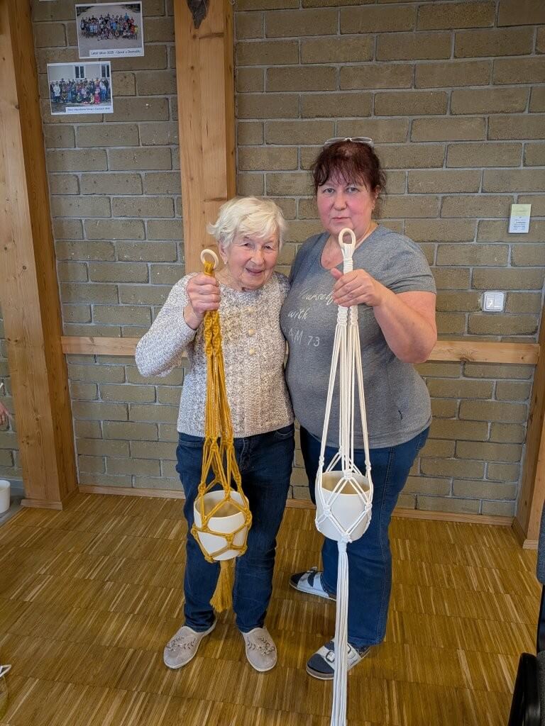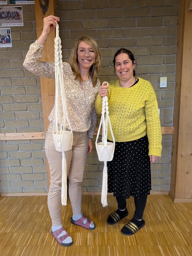 Ve čtvrtek 9.4. jsme společně vyráběly drhaný závěs na květinu, dnes známější jako macramé závěs. Kurzistky si mohly vybrat ze dvou variant květináčů i různých materiálů šňůr a vzorů macramé.