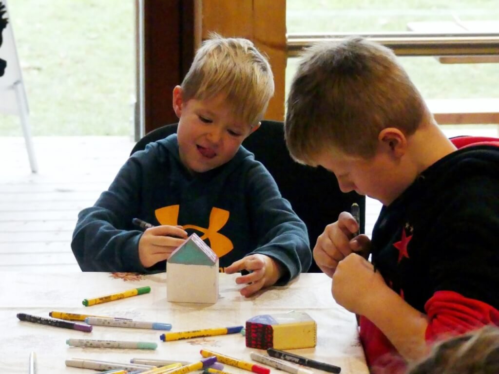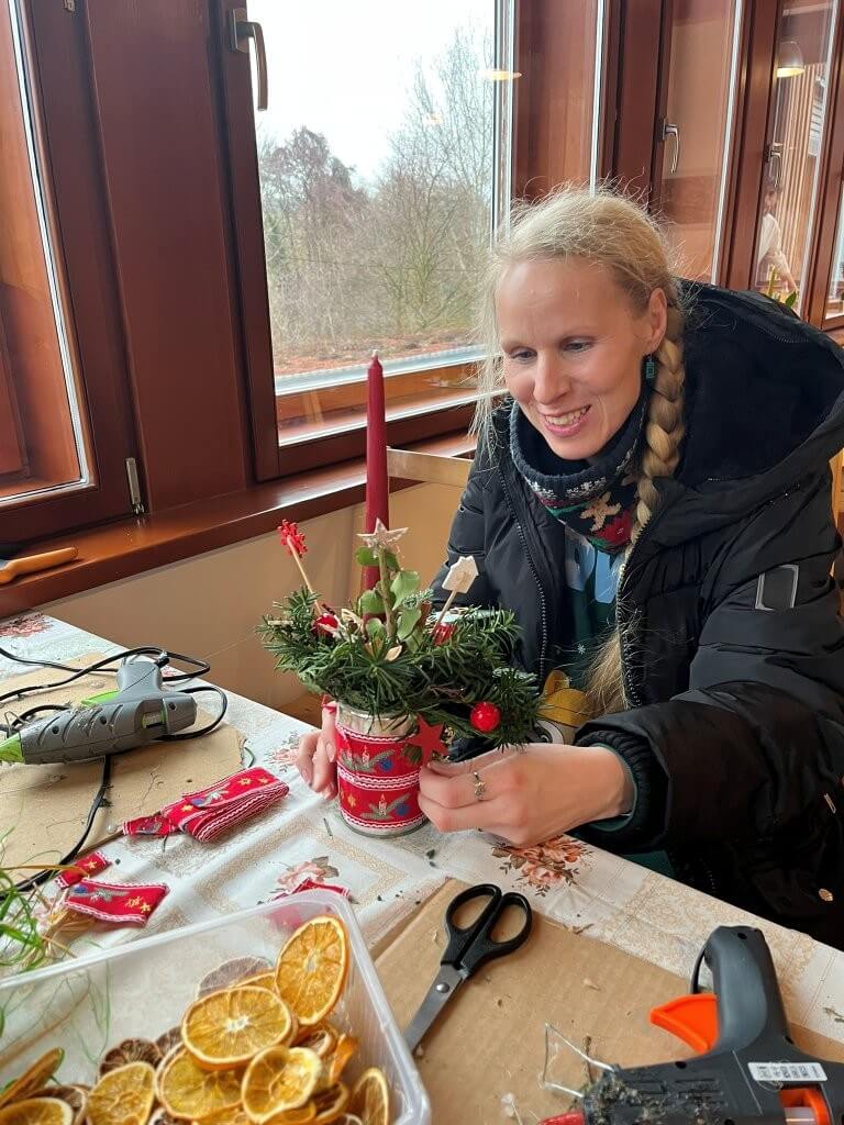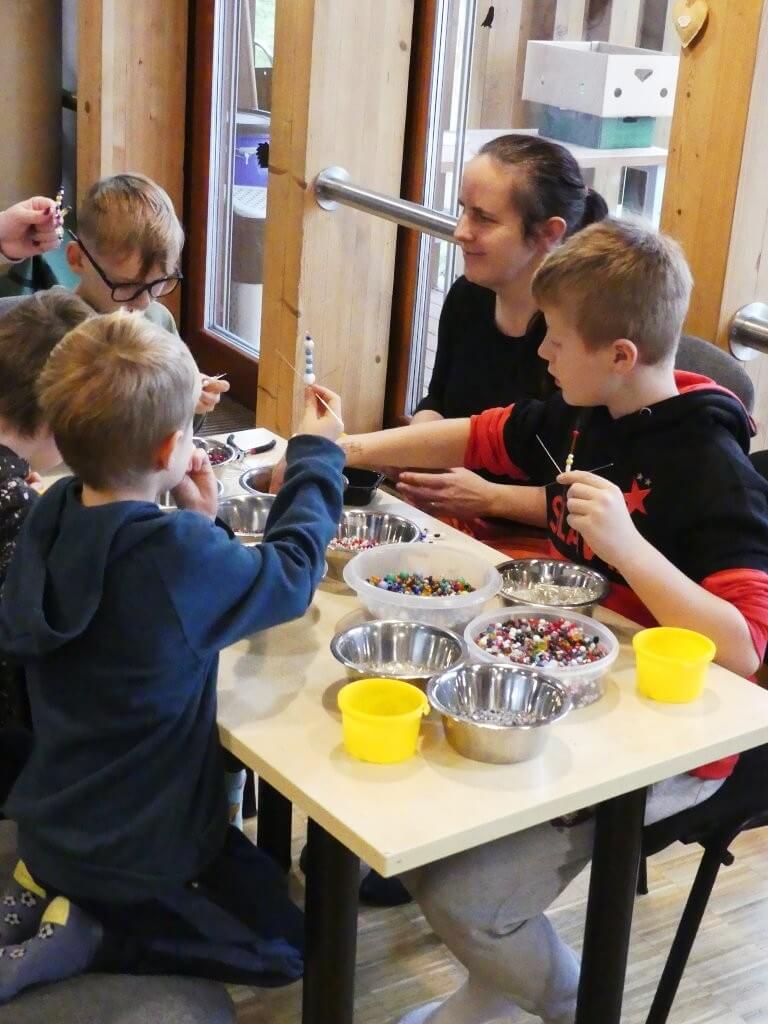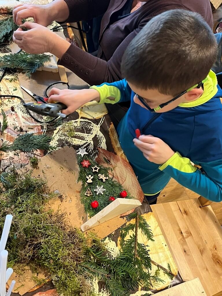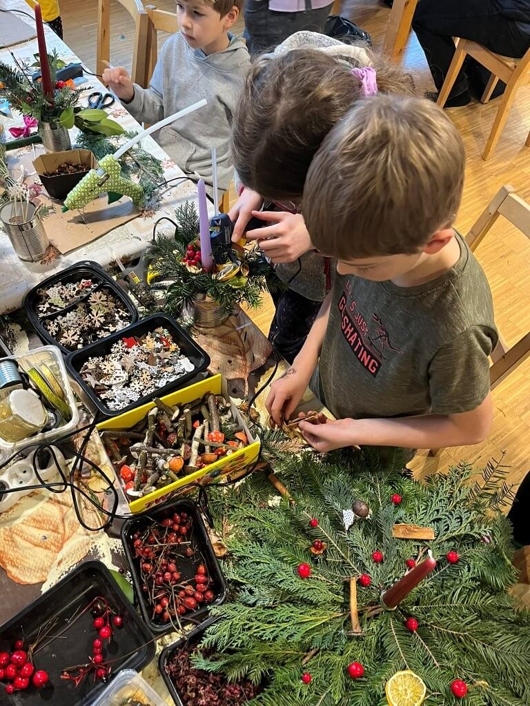 Uvnitř budovy byl připraven pestrý program – vyrábění z papíru, malování dřevěných domků či výroba korálkových ozdob. Nechyběla ani dílnička s přírodninami, kde si návštěvníci mohli vyrobit vánoční dekorace.