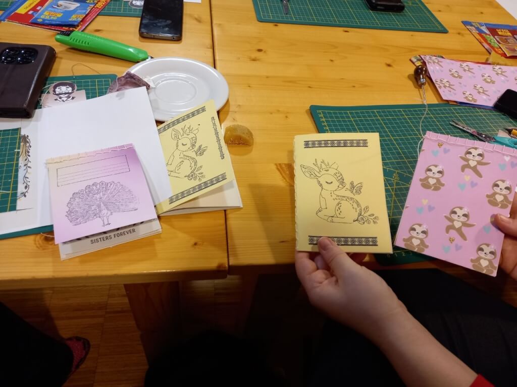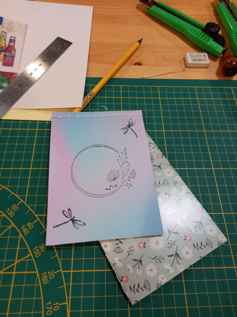 V průběhu kurzu jsme se naučili dva typy vazby, jak správně ořezat papíry a jak si připravit přední stranu sešitu.